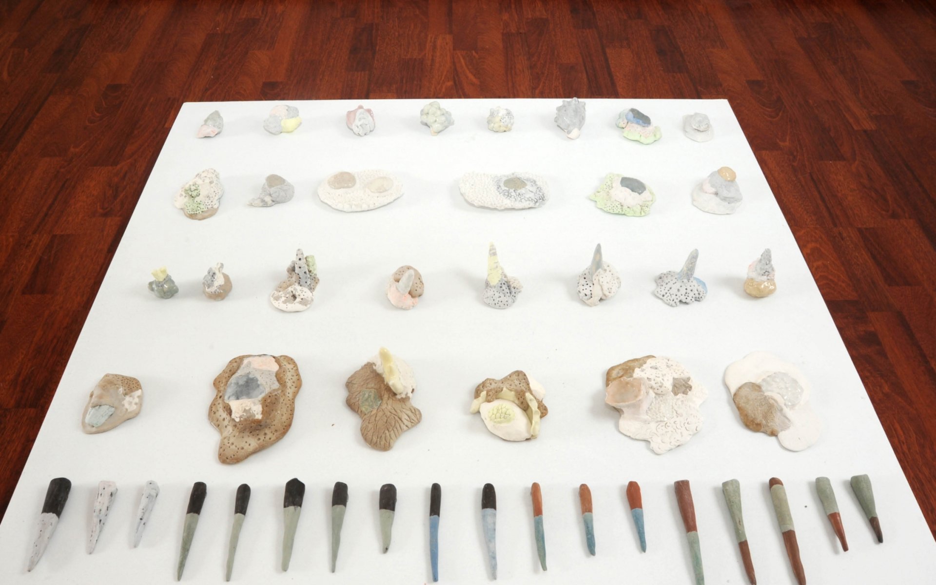 Epidermes, 2016 - série de 50 céramiques, plâtre, ciment teinté, pigments